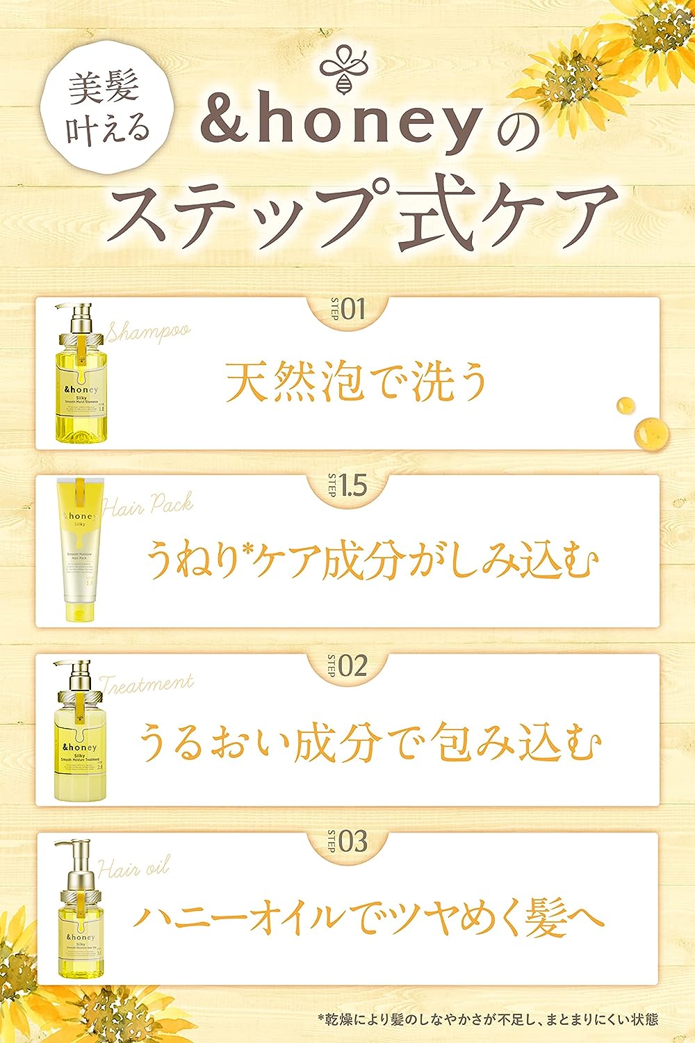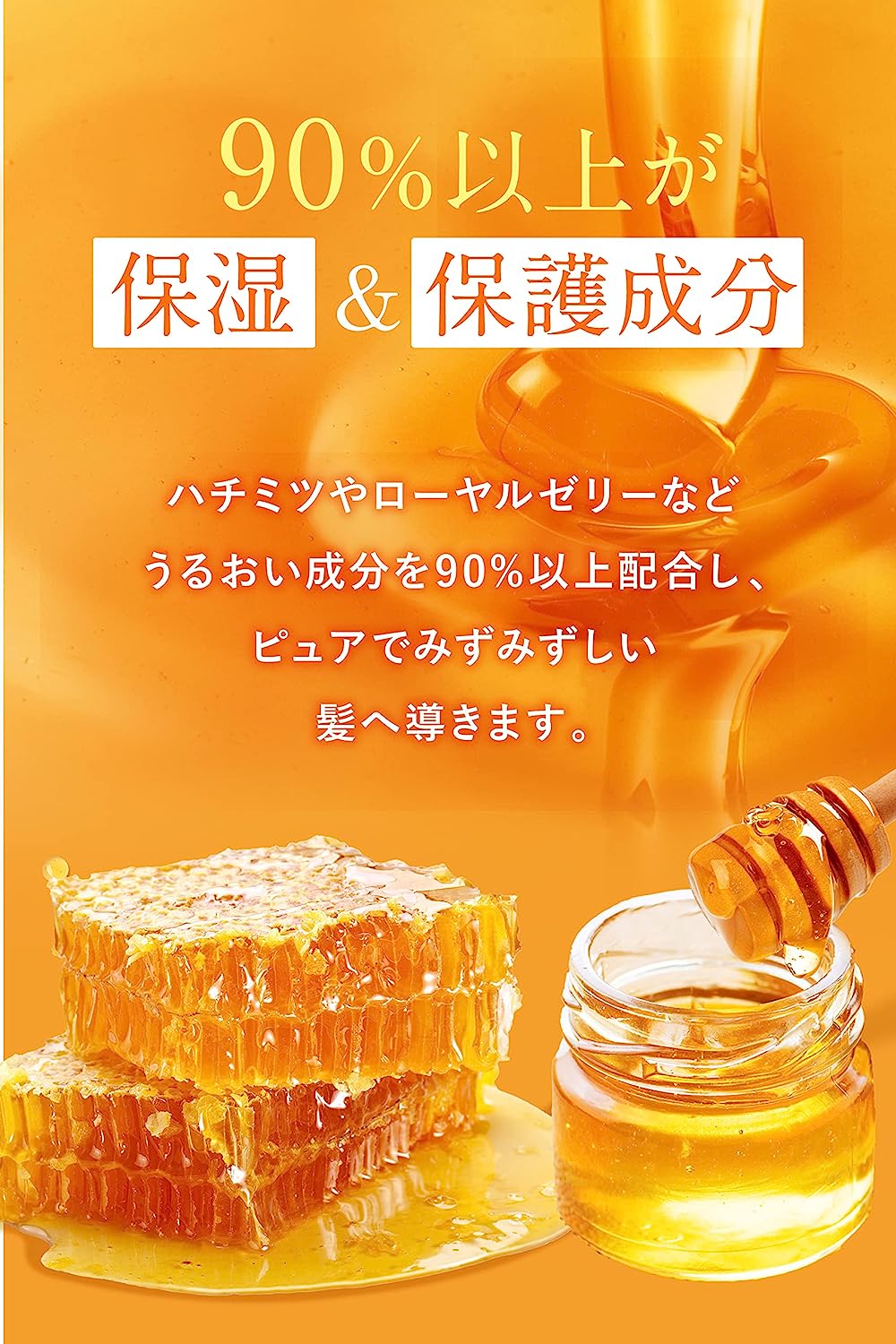 Concentrando-se no teor de água de 14% do cabelo, este óleo capilar do “novo cuidado pegajoso do mel” cuida dos emaranhados e da rigidez com retenção de água . Mais de 90% do produto é composto por ingredientes hidratantes e protetores, como óleos orgânicos e queratina. Proporciona cabelos úmidos e macios até as pontas. Formulação sem aditivos. Aroma de mel Eden Fleur.